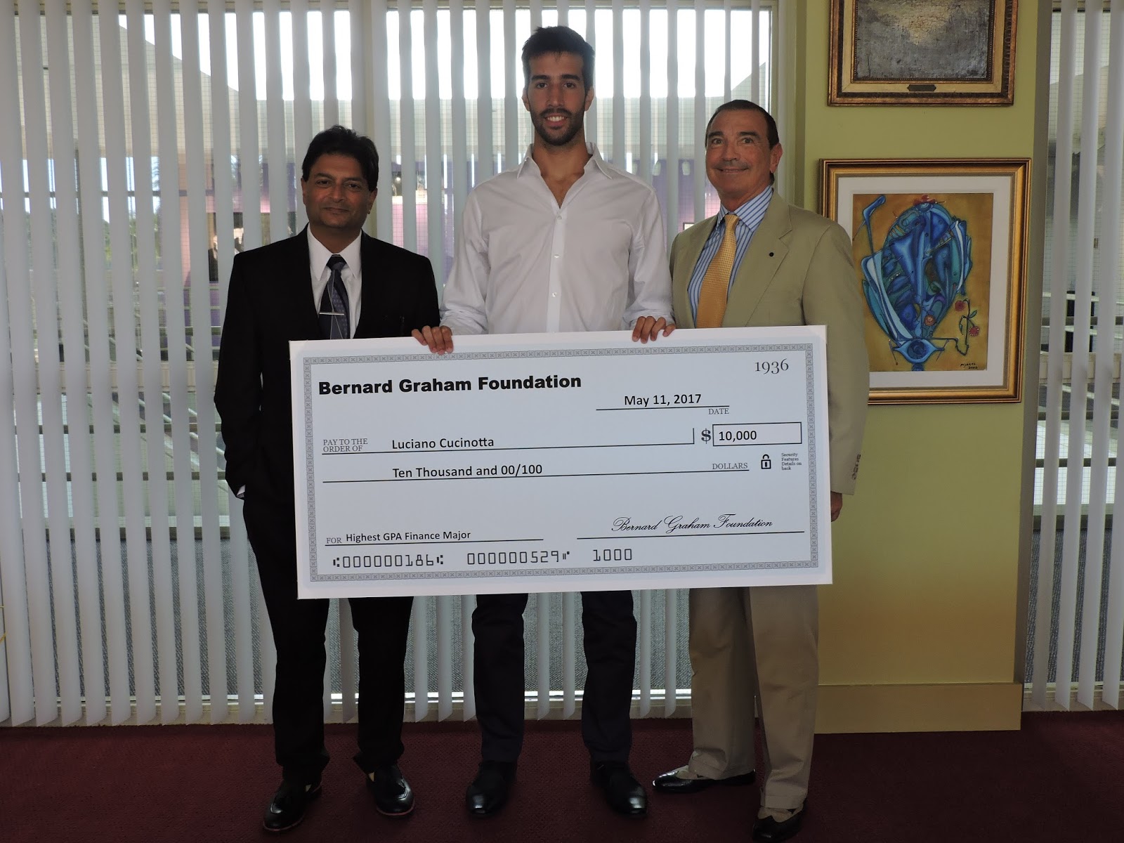 On Thursday, May 11, the Bernard F. Graham Scholastic Award in Finance and Accounting recognized the finance student with the highest grade point average, Luciano Cucinotta, and awarded him with a $10,000 check.