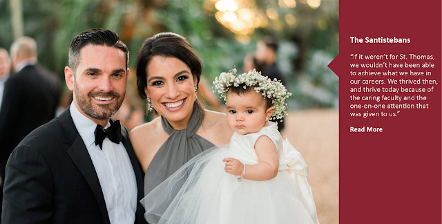 In October of 2016, the Santistebans welcomed their first child, Michaela, who was later baptized at St. Thomas in the Chapel of Saint Anthony.