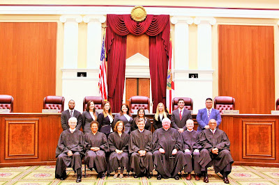 | 3L St. Thomas Law Student, Oscar Quintero (standing far right) along with Florida Supreme Court Justices and other interns |