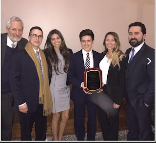Faculty Advisor Howard Blumberg, Student Coach Jaime Lapidus, Competitors Alejandra Bernadet, Austin Bodnar, and Kelsey Geary, and Alumni Coach Armando Hernandez |
