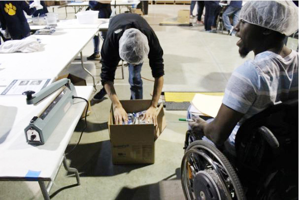 | Antonio shown in packing session at Feed My Staving Children (Photo Courtesy of fmsc.com) |